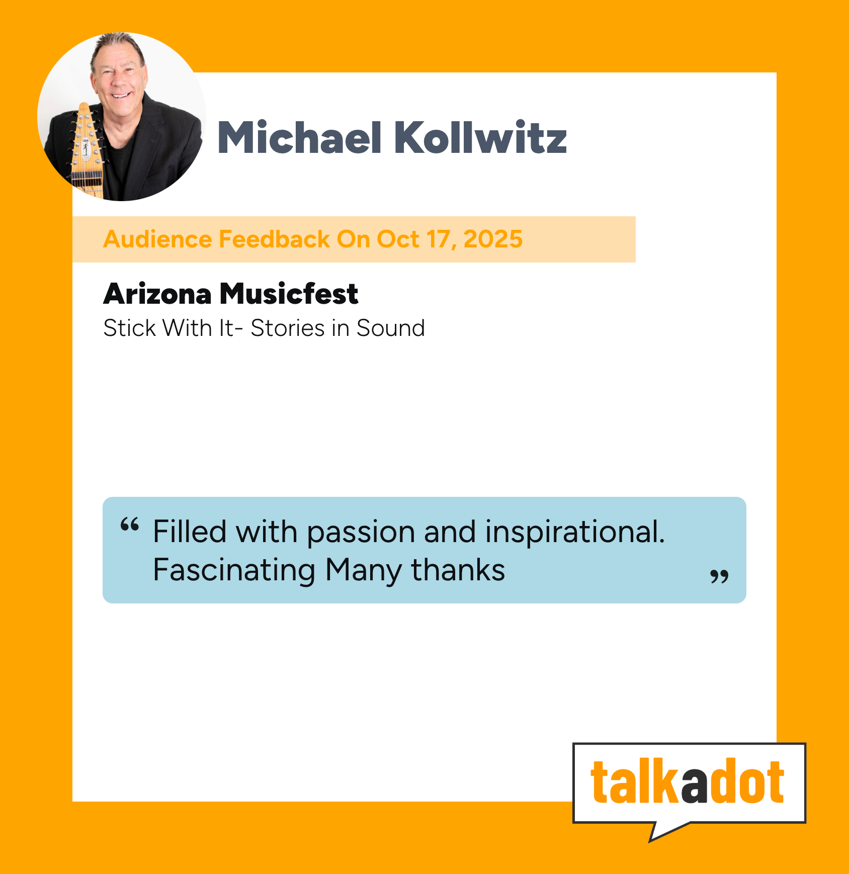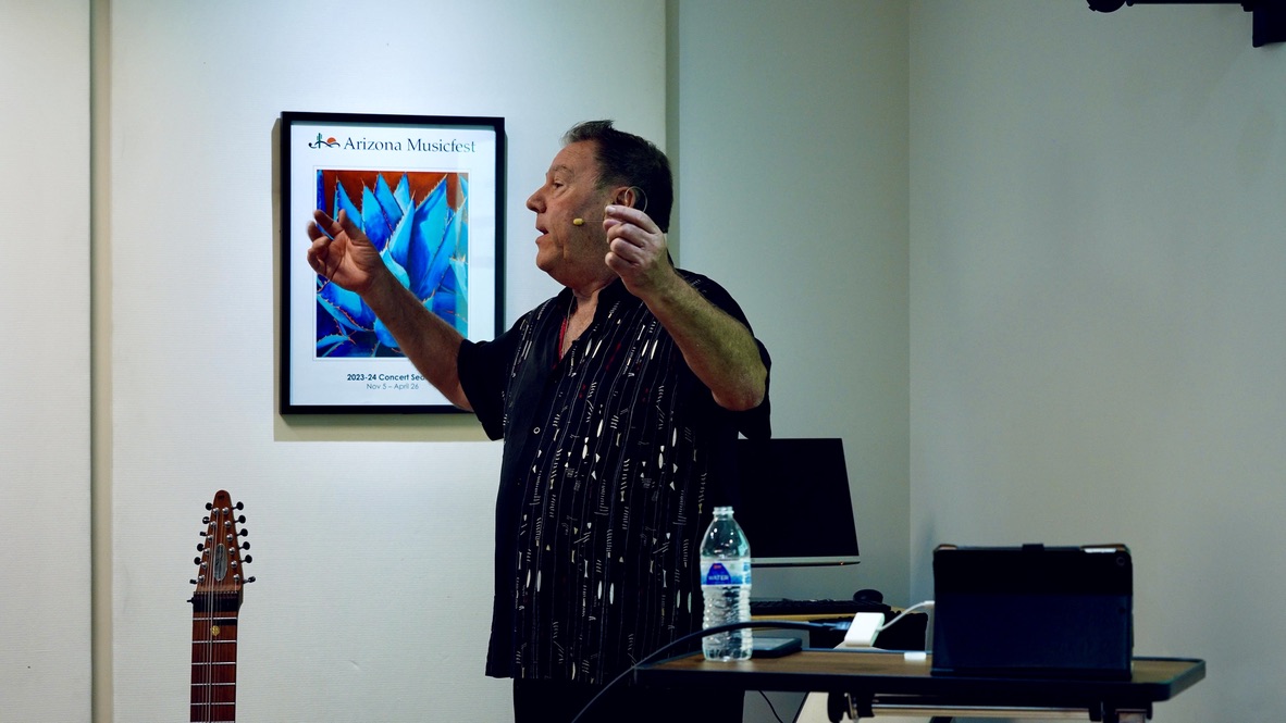 ‘Stick With It- Stories in Sound’ keynote October 21, 2025October 21, 2025 These are photos from my presentation at Arizona MusicFest in Scottsdale on 10/17/25. We had a blast! Here’s the link: https://azmusicfest.org/events/stick-with-it-stories-in-sound/ arizona musicfest, chapman stick, michael kollwitz, speaker/musician, Stick with it- adventures of a chapman stick player, stories in sound Keynote Concerts, Speaking, Stick With It BOOK